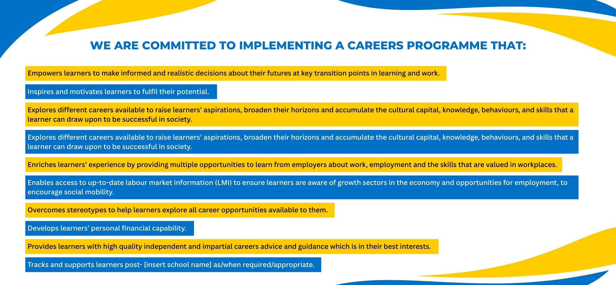 - Information and data – careers data actively used to inform decision making